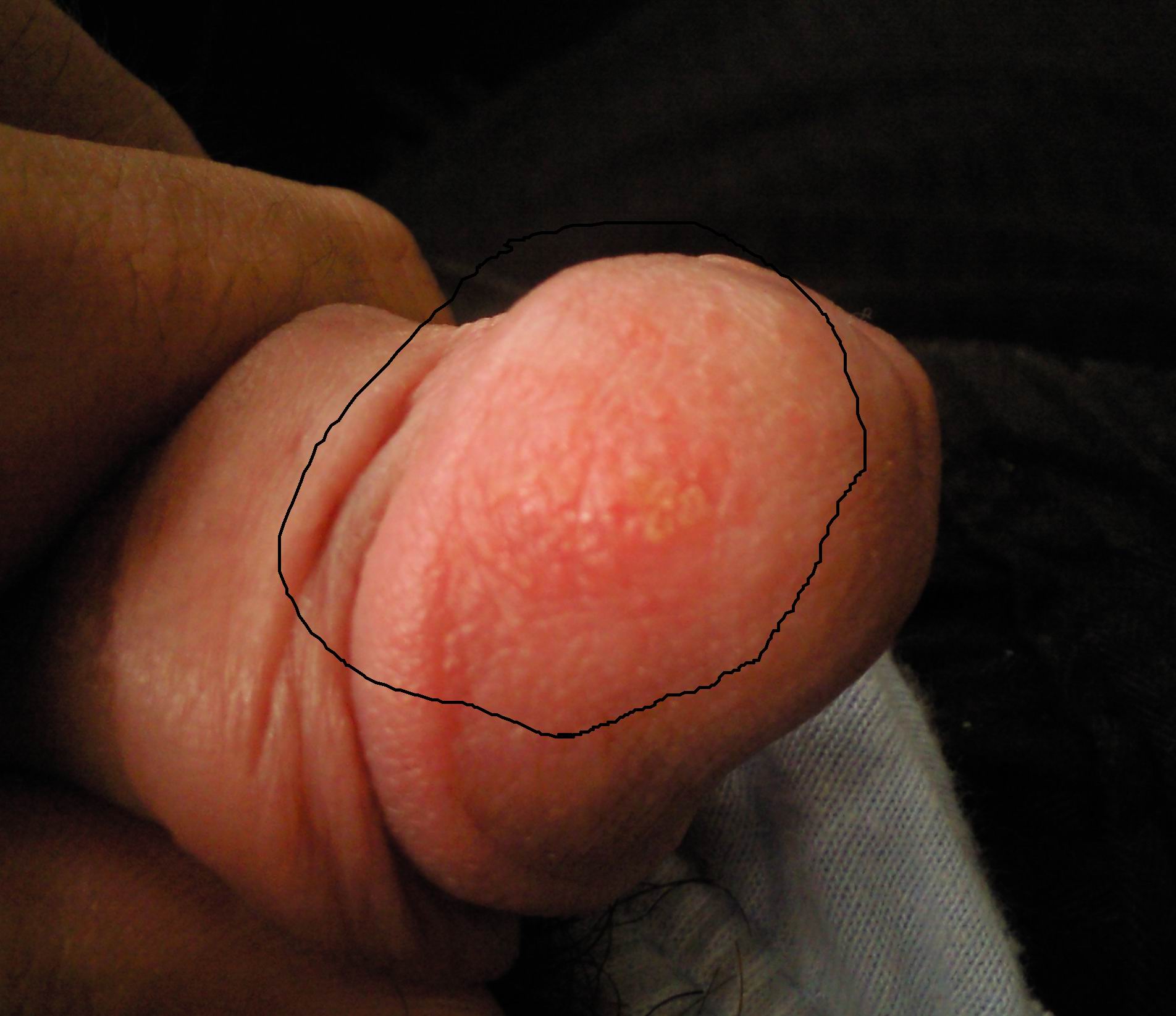 1、环状溃烂性包皮龟头炎 在龟头和包皮上,可见红斑,逐渐扩大,呈环状,可形成浅表性溃疡面。