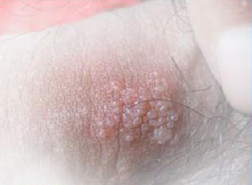 患部先在生殖器部位有烧灼感,开始是一个或多个小的红小丘疹(大多数患者有瘙痒和疼痛),之后迅速变成小疱。3-5天后,小疱糜烂或溃疡、结痂,患者伴有疼痛感。